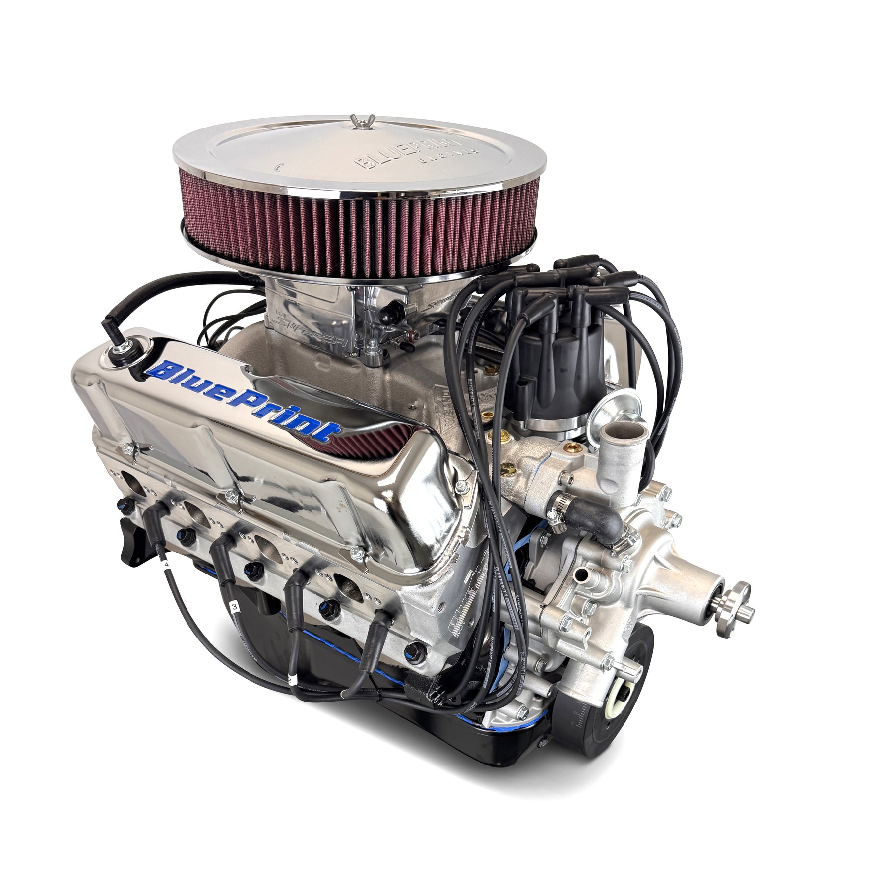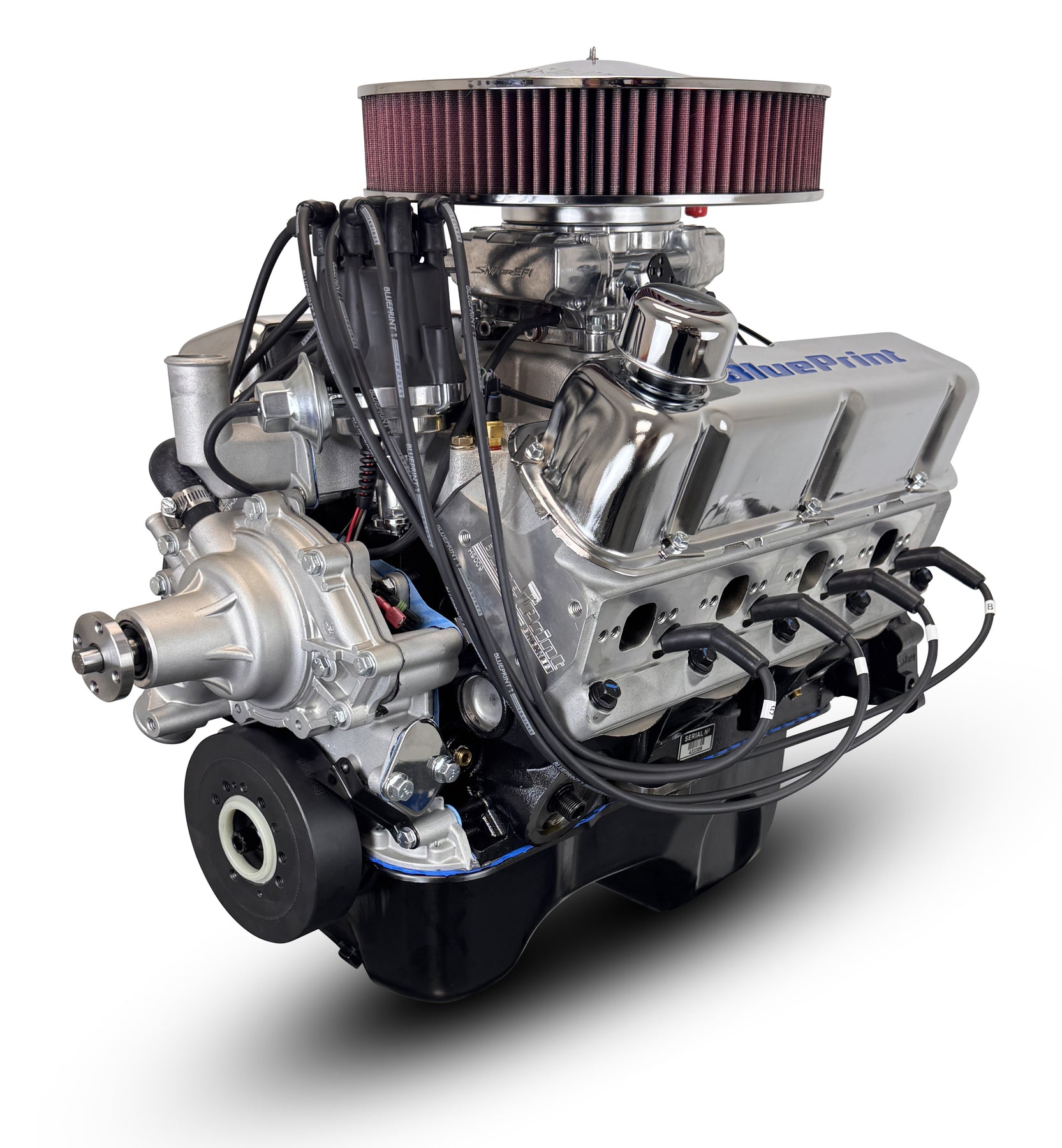 This high-output 427 c.i. Small Block Ford–compatible BluePrint Engine delivers 541 horsepower and 519 lb-ft of torque, making it an excellent choice for aggressive street builds, restomods, and performance enthusiasts seeking a reliable powerplant with serious horsepower and torque. Built around a 9.5-inch deck height Windsor-based BluePrint high-strength cast iron block featuring a 4.125-inch bore, 4-bolt main caps, one-piece rear main seal, and a forged rotating assembly. It is topped with CNC-ported BluePrint Engines aluminum cylinder heads and a matched hydraulic roller camshaft, providing exceptional airflow and a broad, responsive powerband. With a 10.0:1 compression ratio, this engine is optimized for 91+ octane pump gas, delivering impressive performance without sacrificing drivability. Backed by BluePrint Engines’ industry-leading 30-month / 50,000-mile warranty.