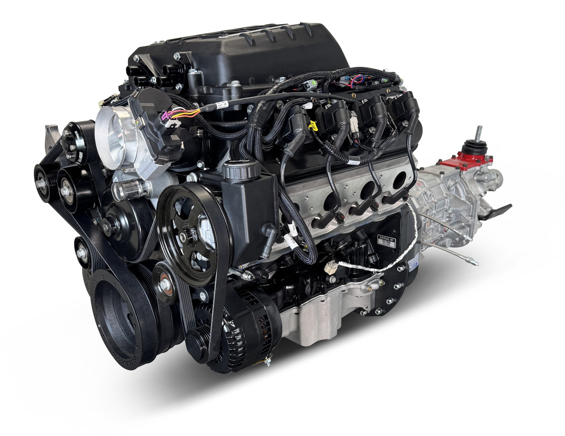 GM LS Compatible 427 c.i. Pro-Series Engine and T56 Manual Transmission - 830 Horsepower - Standard Edition Builder Series - Black Pulley Kit - Holley Terminator X EFI System