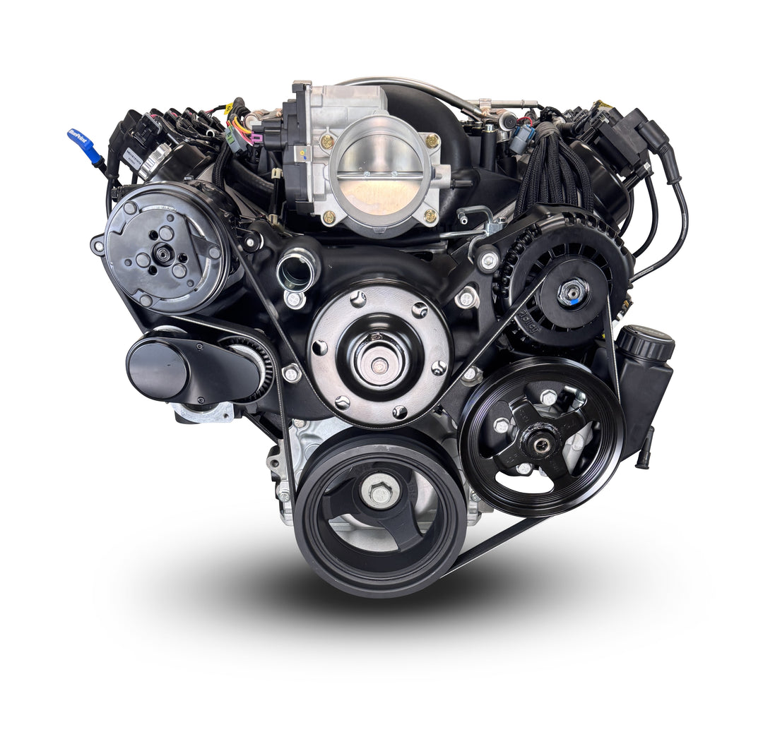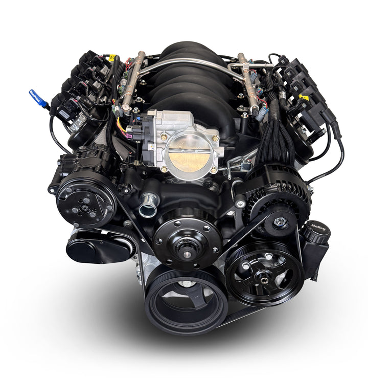 GM LS Compatible 427 c.i. Engine and 4L65/70E Automatic Transmission - 605 Horsepower - Standard Edition Builder Series - Black Pulley Kit - Holley Terminator X EFI System