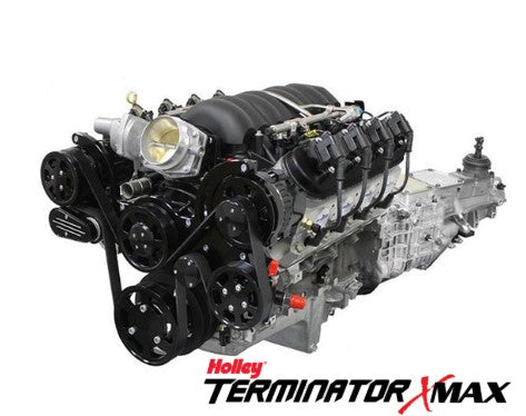 GM LS Compatible 427 c.i. Engine and TKX Manual Transmission - 605 Horsepower - Standard Edition Builder Series - Black Pulley Kit - Holley Terminator X EFI System