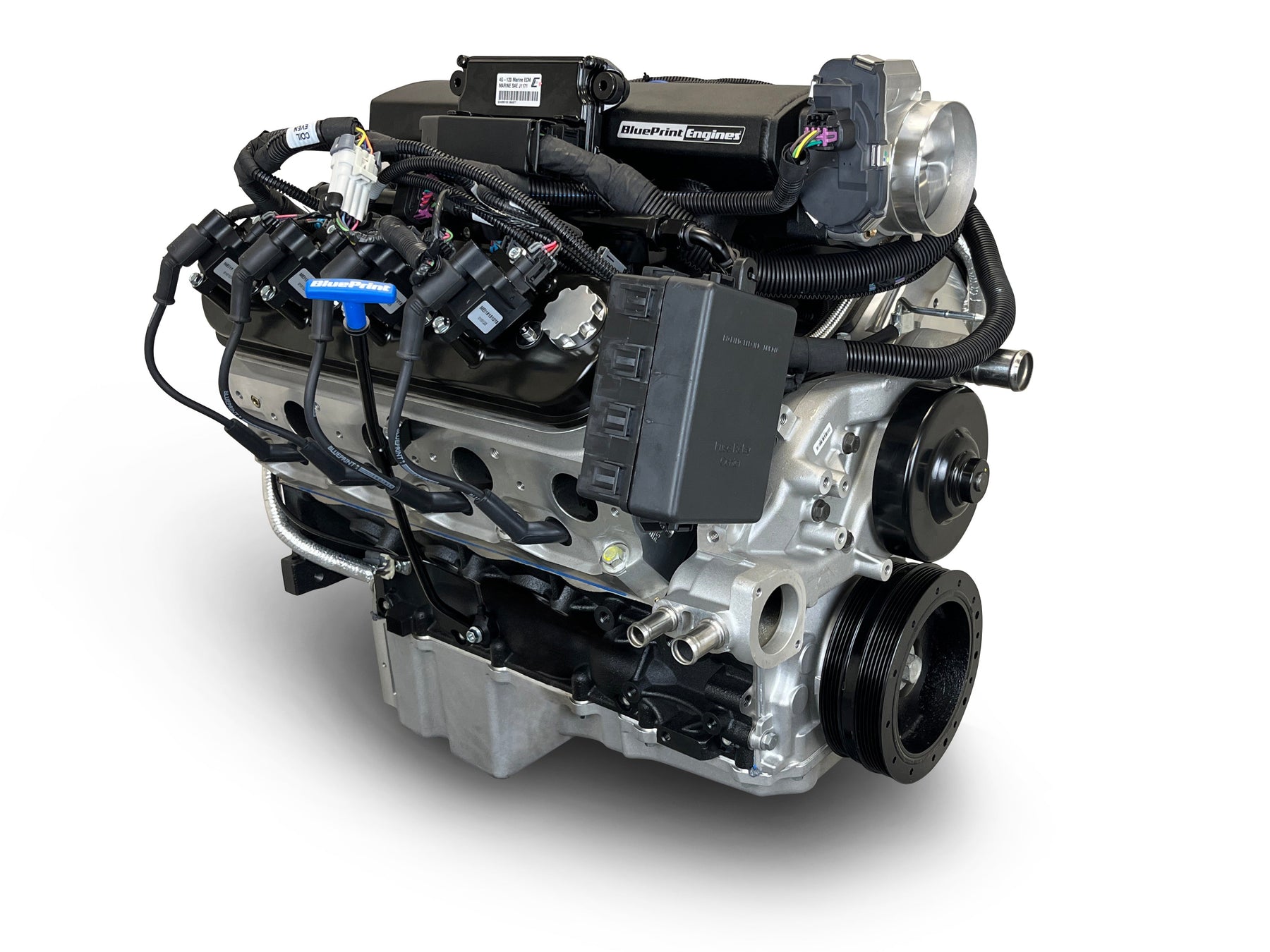 This LS3 compatible engine build is a formidable fusion of strength, precision, and performance, anchored by BluePrint Engines’ high-strength cast iron LSX-style block. It churns out a commanding 525 horsepower and 460 ft. lbs. of torque, with a 10.7:1 compression ratio that ensures both power and efficiency. The setup features BluePrint’s aluminum heads, hydraulic roller cam, and hypereutectic pistons, all working in concert with a nodular iron crankshaft for durability under high-stress conditions. Air and fuel delivery are optimized through a Holley Terminator X Max system, LS3 fabricated aluminum intake manifold, and a matched injector and fuel rail kit. The LS Swap oil pan ensures seamless integration, while the drive-by-wire throttle body adds modern responsiveness. Altogether, this engine is engineered to deliver relentless performance with rock-solid reliability—perfect for enthusiasts who demand power without compromise.