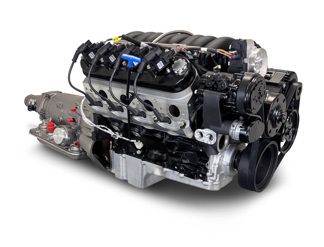 GM LS Compatible 376 c.i. Engine and 4L65/70E Automatic Transmission - 530 Horsepower - Standard Edition Builder Series - Black Pulley Kit - Holley Terminator X EFI System