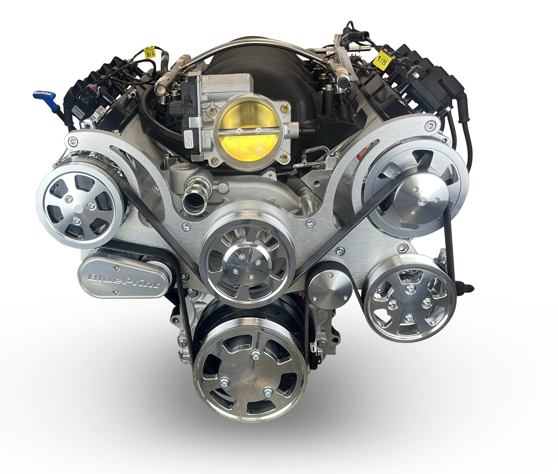 The front accessory drive on this engine fits many vehicles, however it is the customer responsibility to accurately measure and confirm fitment. Note this is a low-profile design, but things such as power steering hoses, alternator wiring, and additional fittings/fabrication may be required on some vehicles.