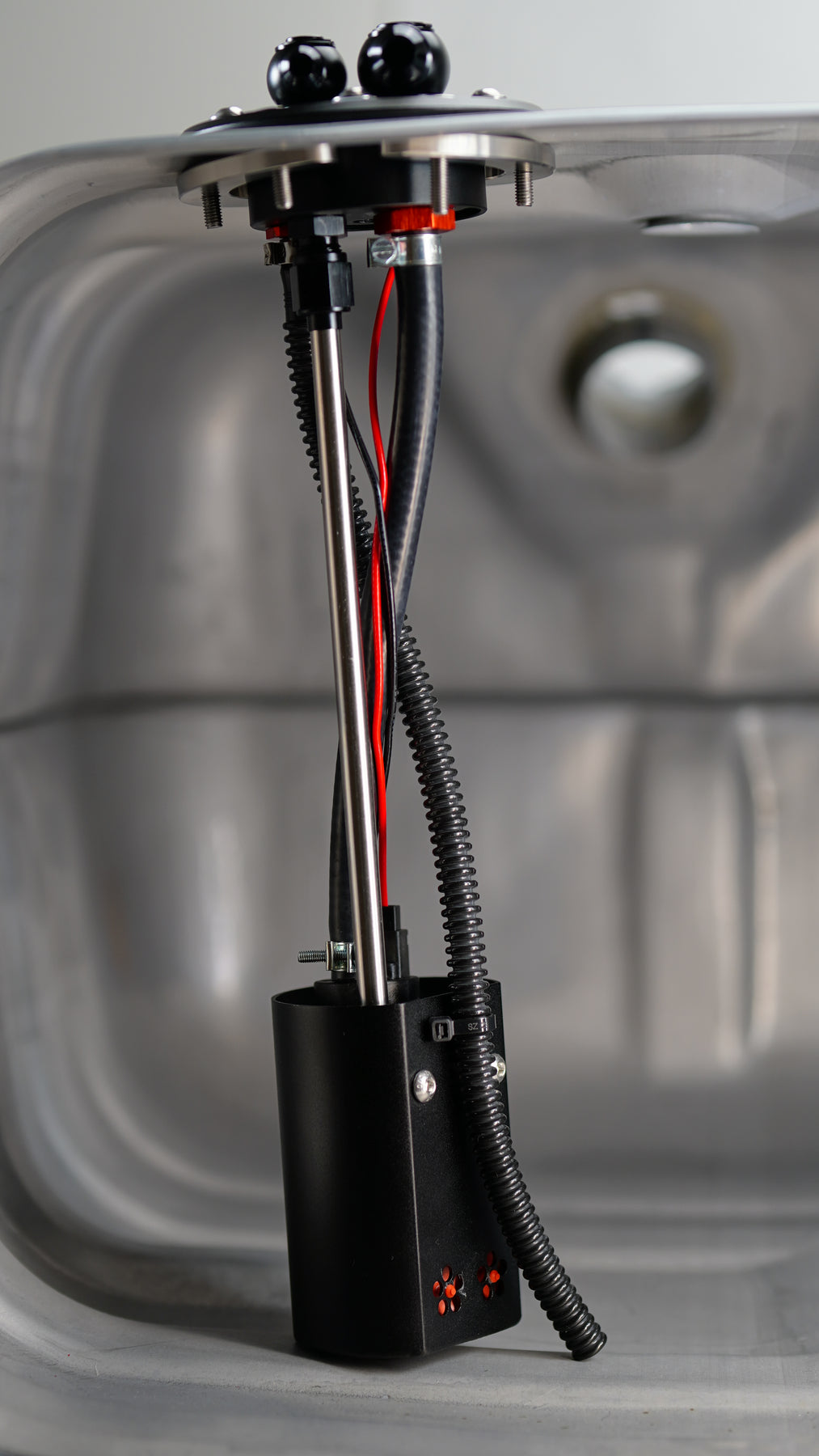 Make fueling your BluePrint engine swap a breeze with our in tank retrofit modules. These simply install into your existing fuel tank, without having to purchase an expensive EFI conversion tank or convert to a fuel cell. Featuring a new design, AN fittings vs inferior NPT threads, and an industry leading depth option from 7-20 inches, these powerful and quality manufactured units are suitable for high horsepower EFI and carbureted engines. Must be installed with quality return style regular, such as BluePrint Engines regulators BPP13101BK, BPP13109BK for EFI applications, or BPP13206BK for carbureted applications. Excellent for muscle car/truck applications the originally featured a carbureted engine, and you’re upgrading to something like a BluePrint LS, or gen III Hemi. Overall protrusion height from the tank has been reduced with unique swivel banjo style AN fittings to add maximum tank to body clearance.